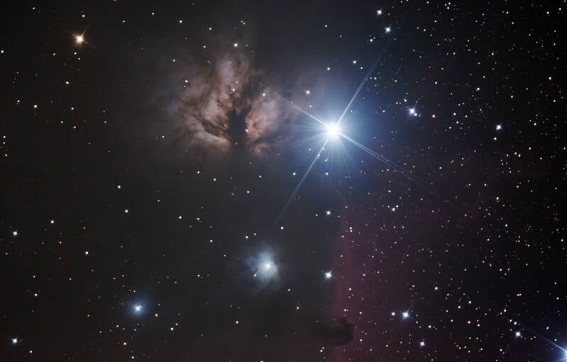 Flammennebel NGC 2024, Reflektionsnebel NGC 2023, IC 434 und Dunkelnebel B33-Pferdekopfnebel