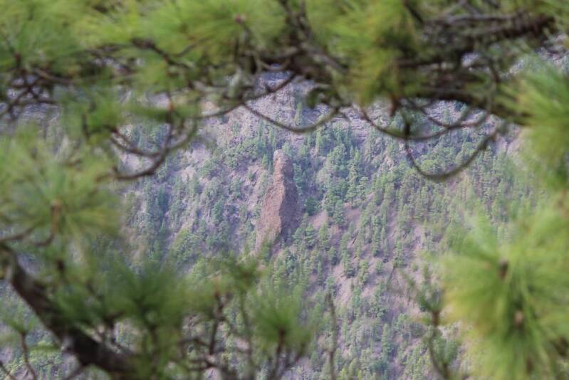 Windböhen in El Paso beim Besucherzentrum für einen Ausflug in die Caldera Tamburiente angemeldet und die Einfahrerlaubnis zum Aussichtspunkt „La Cumbrecita“ erhalten. Ein Spaziergang im Windschatten der Caldera zu einem Aussichtspunkt weiter im Inneren ermöglichte einen Blick auf den berühmten Idafe Felsen.