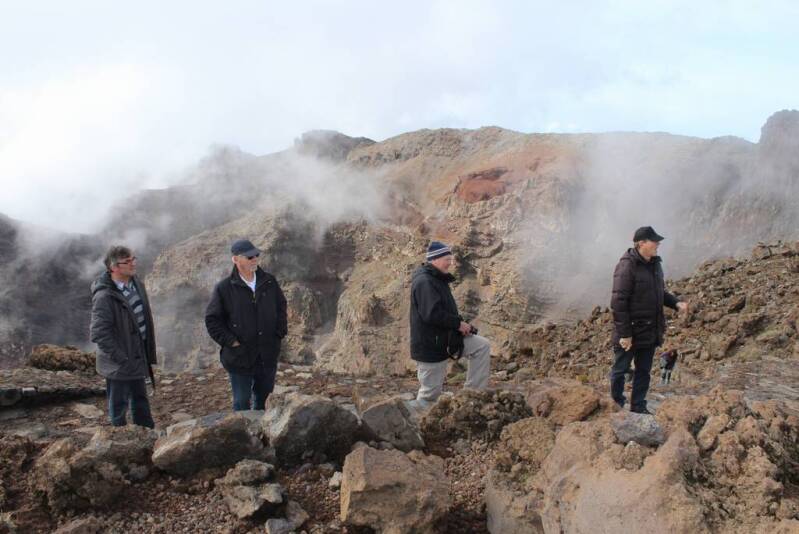 vertrieben. Leider war der Weg um den Krater wegen der örtlichen Wetterverhältnisse (Starker Wind und Nebel) gesperrt. Trotzdem konnten wir einen Blick in den eindrucksvollen Krater werfen. Die Umrundung der Südspitze und den