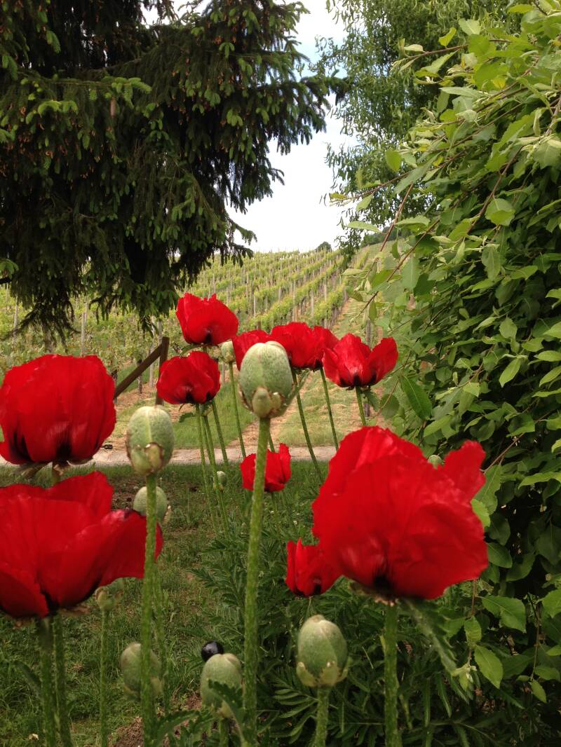 Gegenüber von unserem Garten wird am Hörnleskopf Weinbau betrieben.